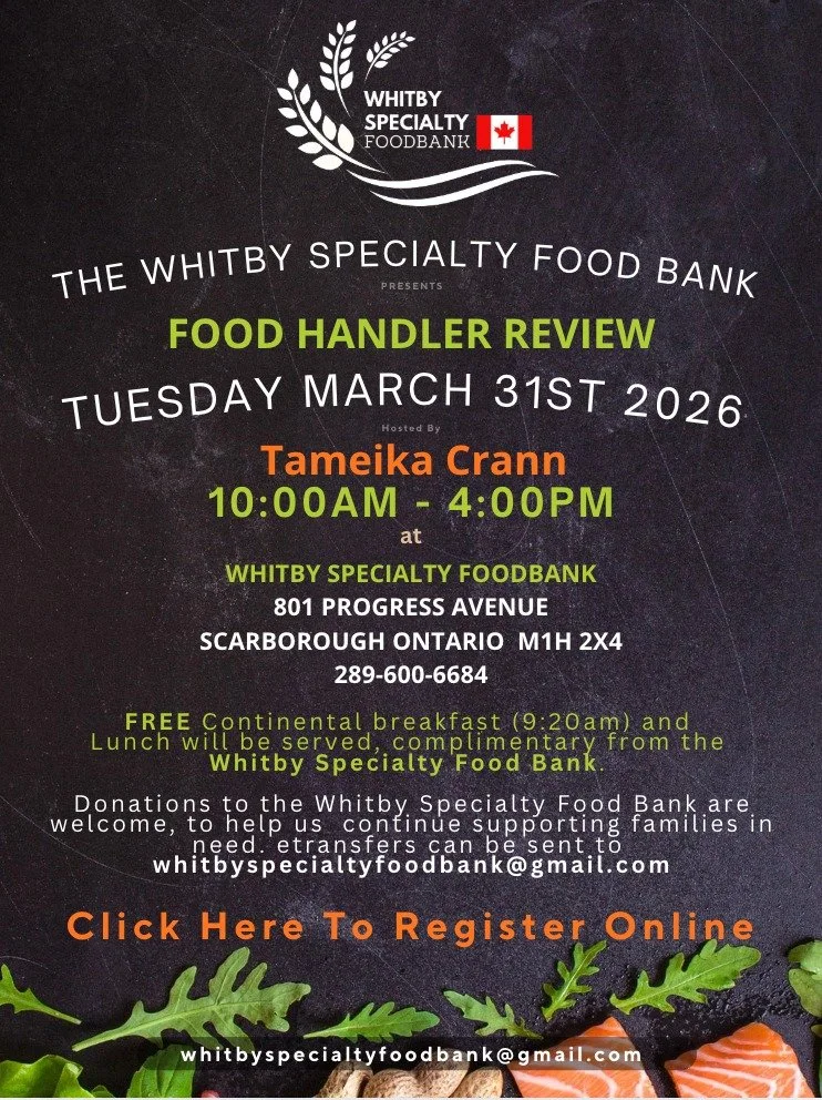 The Whitby Specialty Food Bank is pleased to host aFood Handler Review & Training Session designed to equip members of our community with practical food safety knowledge and safe food handling practices.