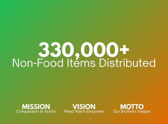 Through the kindness of donors and local partners, more than 330,000 non-food essentials have been shared. These simple items bring comfort, dignity, and stability during difficult seasons.